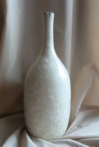 Botella de porcelana con técnica de cristalizado, datada de los años 70. Su diseño es elegante y atemporal. - Material: Porcelana. - Técnica: Cristalizada. - Época: Años 70. Presenta pequeños chip en el borde de la boca y un hilo como se aprecia en las fotografias. Su precio es con descuento por los pequeños daños que se aprecian. Esta preciosa pieza en general se encuentra en buenas condiciones de conservación. Es una auténtica delicadeza.