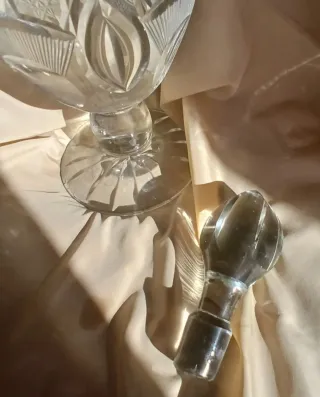 Vintage: Botella licorera de cristal tallado a mano con tapón de cristal en perfecto estado. Esta elegante botella licorera de cristal tallado és una pieza decorativa única. Es para mi un placer compartir con vosotros estas piezas tan bonitas que se merecen tener una nueva oportunidad de uso. Muchas gracias por vuestro interés. Medidas: diámetro 13 cm, alt. 40 cm Esta pieza és una auténtica maravilla y esta en muy buenas condiciones.