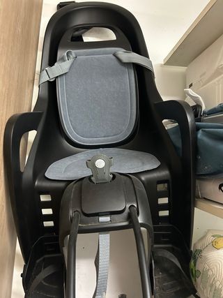 Silla para bicicleta infantil, diseñada para el transporte seguro de los más pequeños. Poco uso. - Asiento acolchado. - Arnés de seguridad. - Respaldo alto.