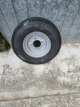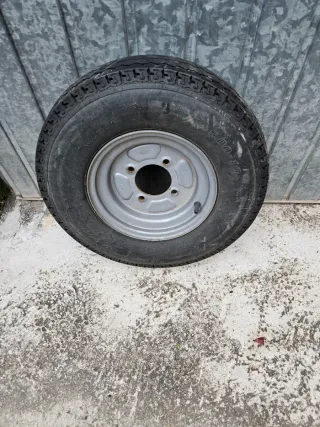 Rueda completa para remolque 5.00-10 - Llanta metálica plateada. - Neumático con algo de dibujo - ideal para rueda de repuesto