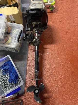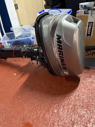 Motor fueraborda Mariner de 5 caballos de potencia. - Modelo de 4 tiempos. - Color gris. Hecho el mantenimiento hace 1 mes y no se ha utilizado. Factura demostrable. Lo vendo por que lo cambio por uno con encendido y trim eléctricos. Sólo recoger en persona.