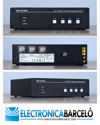 MAT-1500 PRO ACOPLADOR DE ANTENA AUTOMATICO HF 1,6-54 MHZ MAT-TUNER Sintonizador automático de alta potencia hasta 1500 W, 2 antenas conmutables, función bypass, para Yaesu, Icom/Kenwood Descripción Técnica MAT-1500PRO El mAT-1500PRO es la nueva versión revisada del sintonizador mAT-1500. Las mejoras incluyen una carcasa más ligera y de alta calidad, así como interfaces adicionales para dispositivos Yaesu, Icom y Kennwod, incluyendo los correspondientes modos de funcionamiento. Esto permite controlar el sintonizador a través de la radio, reduciendo la operación manual por parte del usuario. ETC... ESCRIBENOS PARA MAS INFO