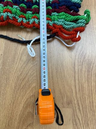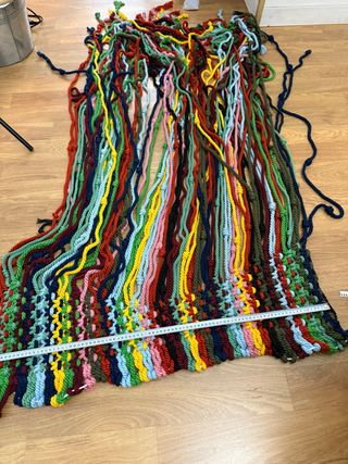 Cortina de macramé hecha a mano con un diseño vibrante y colorido. Perfecta para añadir un toque bohemio a cualquier espacio. - Medidas: 90cm de ancho x 190cm de largo. - Hecha con cuerdas de tela resistentes.