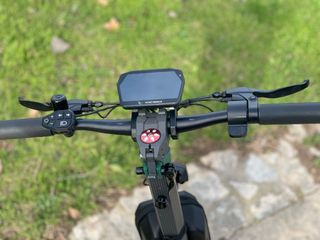 Patinete eléctrico con pantalla y manillar. - Pantalla digital. - Manillar con controles y frenos. - Diseño moderno.