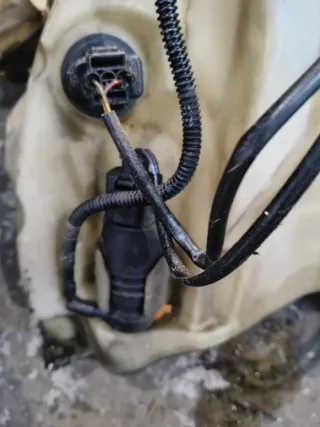 Depósito de limpiaparabrisas y bomba para Audi A4 B7 2.0 de gasolina. - Incluye tapón azul. - Conector eléctrico y mangueras visibles. - Referencias 8E0955451AN / 8E0955451AP