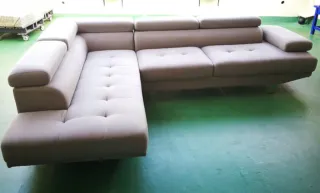Sofá modular de tela en color gris. Su diseño moderno se adapta a diferentes espacios. - Tapicería de tela. - Estructura con asientos capitoné. - Reposacabezas ajustables.