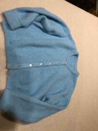Chaqueta de lana en un bonito tono azul cielo. Es una prenda suave y cómoda. - Cierre de botones. - Puños y bajo de canalé.