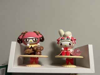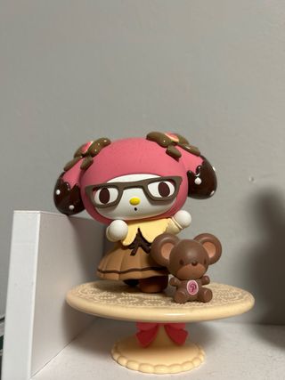 Set de figuras de My Melody. PRECIO DE LAS DOS JUNTAS - Diseño inspirado en dulces y chocolates. - Incluye un pequeño osito. - My Melody con gafas y sombrero rosa. - My Melody con traje de conejito y sombrero.
