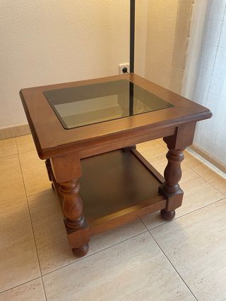 Mesa auxiliar madera con cristal