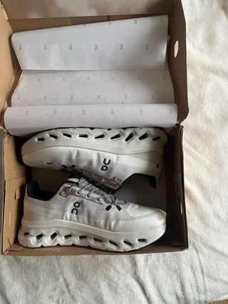 Zapatillas deportivas de la marca On, modelo Cloud. - Color beige. - Diseño moderno y ligero. precio negociable