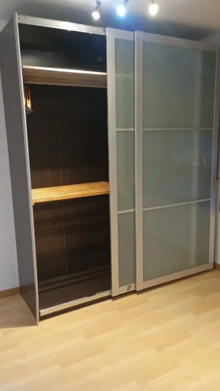 Armario de diseño moderno con puertas correderas.¡! Urge por cambio de domicilio! - Estructura de metal. - Paneles de cristal esmerilado y transparente.
