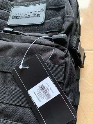 Mochila táctica de la marca Mil-Tec con una capacidad de 20 litros en color negro. Compartimento principal espacioso. Características en las últimas fotos. Nueva a estrenar. Posibilidad de envío.