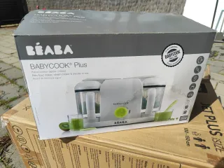 Robot de cocina Béaba Babycook Plus para preparar comida para bebés. Permite cocinar al vapor y mezclar. - Modelo: Babycook Plus - Marca: Béaba - Funciones: Cocina al vapor, mezcla - Incluye vaso medidor y espátula