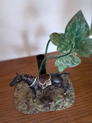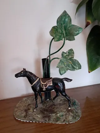 Caballo y jarrón antiguo de latón pintado