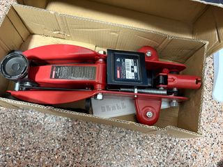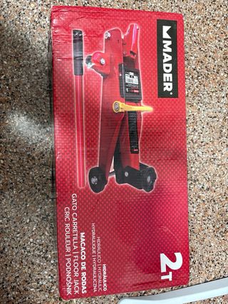 Gato hidráulico de color rojo, con capacidad de 2 toneladas. - Modelo: Gato Carretilla - Altura mínima: 135mm - Altura máxima: 330mm