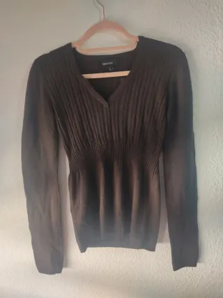 Suéter de Mango color marrón chocolate de punto fino con cuello en V, con un diseño acanalado y un corte entallado (foto 3), está como nuevo