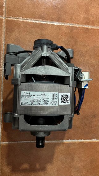 Motor para lavadora G&J. - Modelo: GJ-2UA023K. - Voltaje: 220-240V 50-60Hz. - Washing: 4,0A 60W 784r/min - Spin: 2,2A 310W 14,800r/min - Fabricante: Suzhou G&J Electronics.