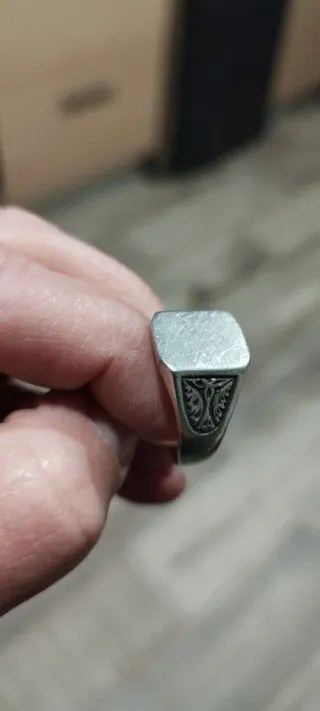 Anillo tipo Sello con un diseño tallado a cada lado en la banda. Sin grabar. - Material: Plata. - Diseño: Grabado ornamental en la banda. - Listo para grabar en su sello
