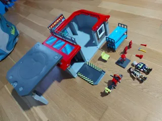 Estación de bomberos Playmobil que se pliega en un maletín para facilitar su transporte y almacenamiento. Incluye accesorios para vivir emocionantes aventuras. - Estación de bomberos con helipuerto. - Cama de hospital. - Motocicleta. - Figuras de bomberos. - Extintores y otros accesorios.