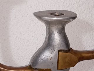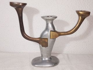 Antigua escultura candelabro arte de estilo brutalista, diseñado por David Marshall , Sevilla Spain , es de aluminio fundido y bronce o laton , pesa mas de 2 kilos , esta marcado , mide de ancho 30,5cm de profundidad 8 cm y de altura 25 cm - Fabricado en metal. - Combinación de acabados dorados y plateados
