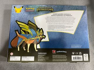 Esta colección de Pokémon Celebraciones incluye un pin deluxe. - Contiene varios sobres de cartas coleccionables de Pokémon. - Incluye una carta especial de Zacian. - Viene con un pin coleccionable de Pikachu. Sellado