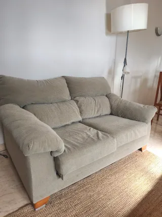 Sofá de 2 plazas tela beige y gris