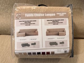 Funda para chaise longue con brazo derecho, color beige, de la marca Eyse. Tejido texturizado, fácil de colocar, ajusta perfectamente y es muy resistente. Tengo otra igual en mi sofá y estoy muy satisfecho con ella. En su embalaje original, a estrenar. Vendo porque compré dos por error. Precio actual en tienda online 83€.