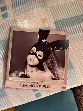 Vinilo del álbum Dangerous Woman de Ariana Grande. - Portada icónica con la artista. - Incluye el título del álbum y el nombre de la artista.