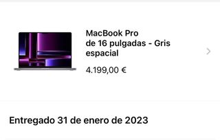 MacBook Pro de 16 pulgadas con chip M2 Pro y 32 GB de memoria. Modelo de 2023. - Chip: Apple M2 Pro - Memoria RAM: 32 GB - Pantalla: 16 pulgadas - 2T ssd - Año: 2023 Muy poco uso en casa y conectado a monitor externo Precio nuevo 4199€