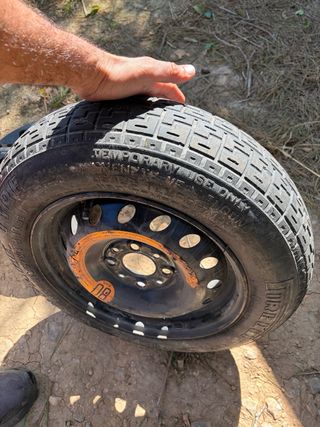 Rueda de repuesto para Fiat Panda modelo 169. Es una rueda temporal. - Marca Pirelli. - Indicación de velocidad máxima 80 km/h. Además: Retrovisor interior, Parasol del chofer con sus anclajes y tornollos