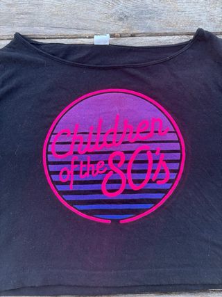 Camiseta corta con un diseño retro inspirado en los años 80. -Estampado circular con el texto Children of the 80's. - Diseño con degradado de colores vibrantes. Esta nueva sin etiquetas nunca usada