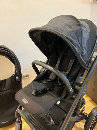 Cochecito Cybex Balios S en color negro. Un diseño elegante y funcional para los paseos. - Capota extensible. - Asiento reversible. - Plegado compacto. - Protector de lluvia