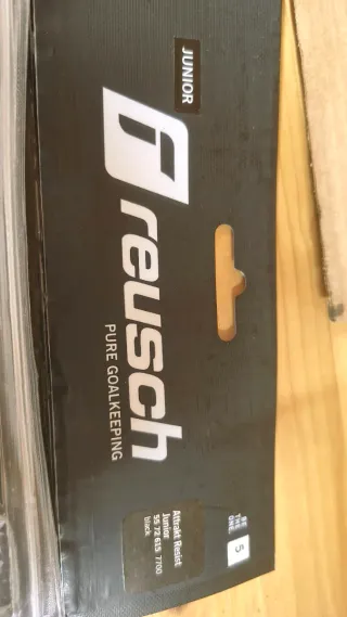 Guantes de portero diseñados para niños, con un ajuste seguro y cómodo. - Marca REUSCH - Cierre de velcro en la muñeca. - Diseño en color negro con detalles blancos y grises. TALLA 5