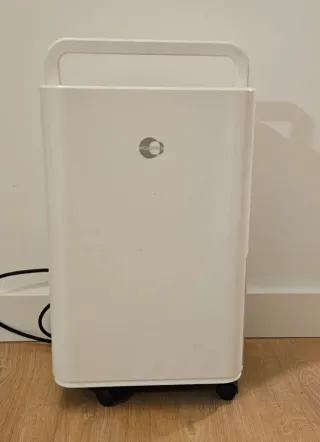 Deshumidificador de la marca Equation en color blanco. Cuenta con ruedas para facilitar su movilidad. - Diseño moderno y compacto. - Asa superior para transporte. Tenia 3, vendi 2 y me quedé éste, pero al final no lo haré servir. Acepto ordenador portátil a cambio. No negociable, en tienda cuesta 200 euros.