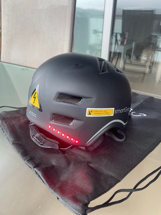 casco multimedia para patinete o bici smart gyro. - tiene altavoces integrados y controles en la barbilla. (ya no se fabrican) - luces e intermitentes y un mando a distancia para controlarlo. - intrucciones, cargador y bolsa de transporte. - apenas se a usado. - talla M 56-58 ENTREGA EN MANO