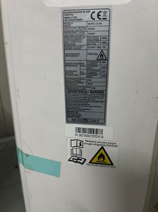 Se vende aire acondicionado portátil de la marca Mundoclima. Precio por los dos. - Color blanco. - Fabricado en plástico.