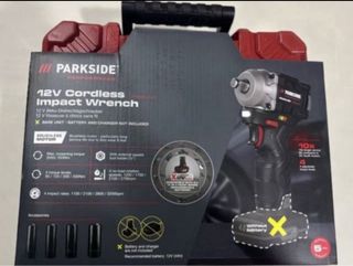 Pistola de impacto inalámbrica Parkside Performance de 12V. El motor sin escobillas ofrece una larga vida util. - Motor sin escobillas. - Par de apriete máximo de 350 Nm (5Ah). - 4 niveles de par: 85/125/200/300 Nm. - 4 velocidades sin carga: 1200/1700/2100/2700 грт. - 4 velocidades de impacto: 1100/2100/2600/3200 bpm. - Incluye 4 vasos. - Batería y cargador no incluidos.