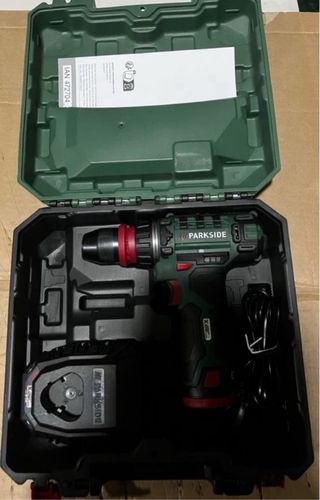 Taladro inalámbrico Parkside 12V, modelo PBSA 12 E4. へ - Par de torsión máximo: 28 Nm. - Velocidades de rotación: 1ª marcha 0-350 rom / 2ª marcha 0-1300 rpm. - Diámetro máximo de perforación: 25 mm en madera / 10 mm en metal. - Rango de sujeción del portabrocas: 0.8-10 mm. - Compatible con baterías recargables Parkside X 12V Team. -Incluye bateria 12v 2ah y cargador 12v 2,4ah