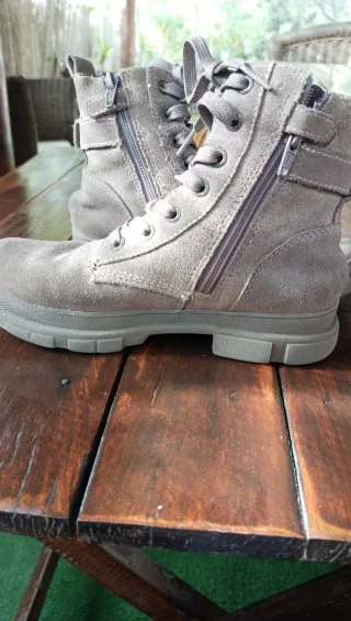 Botas de estilo militar para niña. - Cierre de cordones y cremallera lateral. - Detalle de hebilla. - Suela de goma.