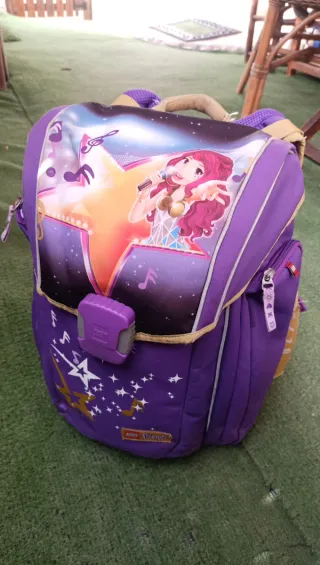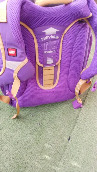Mochila escolar morada con diseño de Lego Friends. Perfecta para llevar los libros y material escolar. - Diseño con personaje de cantante y estrellas. - Cierre de solapa con broche. - Bolsillo lateral con cremallera. -incluye bolsa de cambio