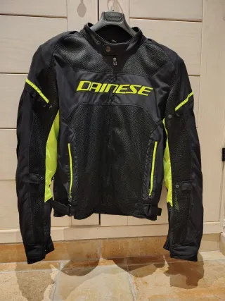 Chaqueta de primavera/verano moto Dainese para hombre en talla 54. - Color negro con detalles en amarillo neón. - Paneles de malla para ventilación. - Cierre de cremallera frontal. - Bolsillos con cremallera. - Protecciones en hombros y codos. - Forro interior cortavientos extraible. Cómo nueva, nunca se ha usado.