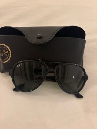 Gafas de sol Ray-Ban con montura negra. - Diseño aviador. - Lentes oscuras.