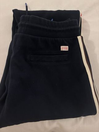 Conjunto deportivo de la marca Scotch & Soda. - Color azul marino. - Detalle de rayas laterales en blanco y marrón. - Etiqueta de la marca en la parte trasera.
