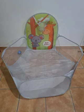 Divertido parque infantil con un alegre diseño de animales. - Estructura de malla transpirable. - Panel trasero con dibujos de koala y jirafa. - Aro para lanzar pelotas.