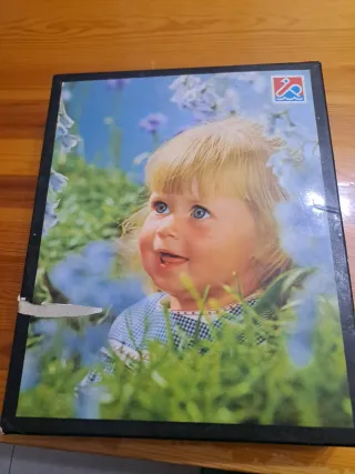 Rompecabezas con una imagen de una niña rodeada de flores y hierba verde. - Ilustración colorida. - Diseño infantil.