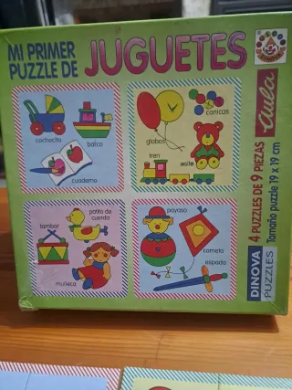 Puzzle infantil Mis Primeros Juguetes de Dinova Aula. Contiene 4 puzzles de 9 piezas cada uno. - Diseños coloridos con juguetes. - Tamaño de cada puzzle: 19 x 19 cm.