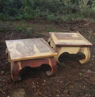 Se venden dos mesitas de noche o auxiliares de madera de acacia. Están en perfecto estado, como nuevas. - Medidas: 60 cm de ancho, 60 cm de fondo y 40 cm de alto. - Material: Madera de acacia.