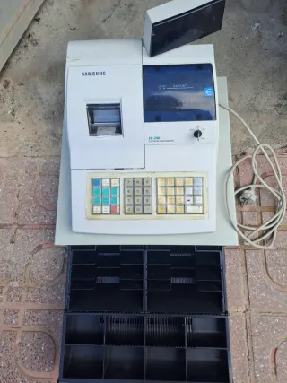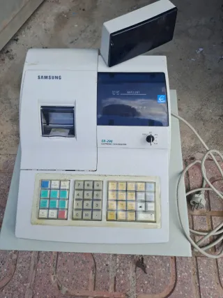 Registradora electrónica Samsung modelo ER-290. - Pantalla digital para visualización de importes. - Teclado numérico y de funciones. - Cajón portamonedas extraíble.