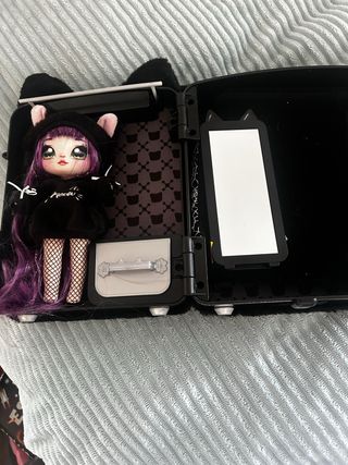 juguetes en perfecto estado - Incluye una muñeca con capucha y orejas. - Compartimento interior con espejo. mochila negra de gatito