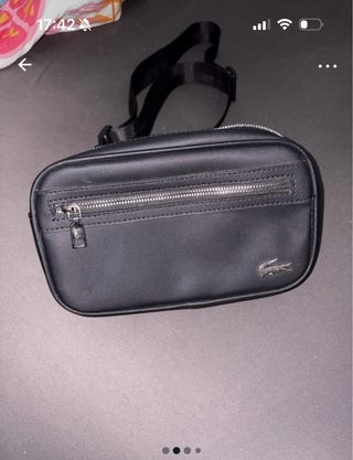 Bandolera de la marca Lacoste. - Diseño moderno y funcional. - Cremalleras plateadas. - Logo de cocodrilo plateado en la parte frontal.
